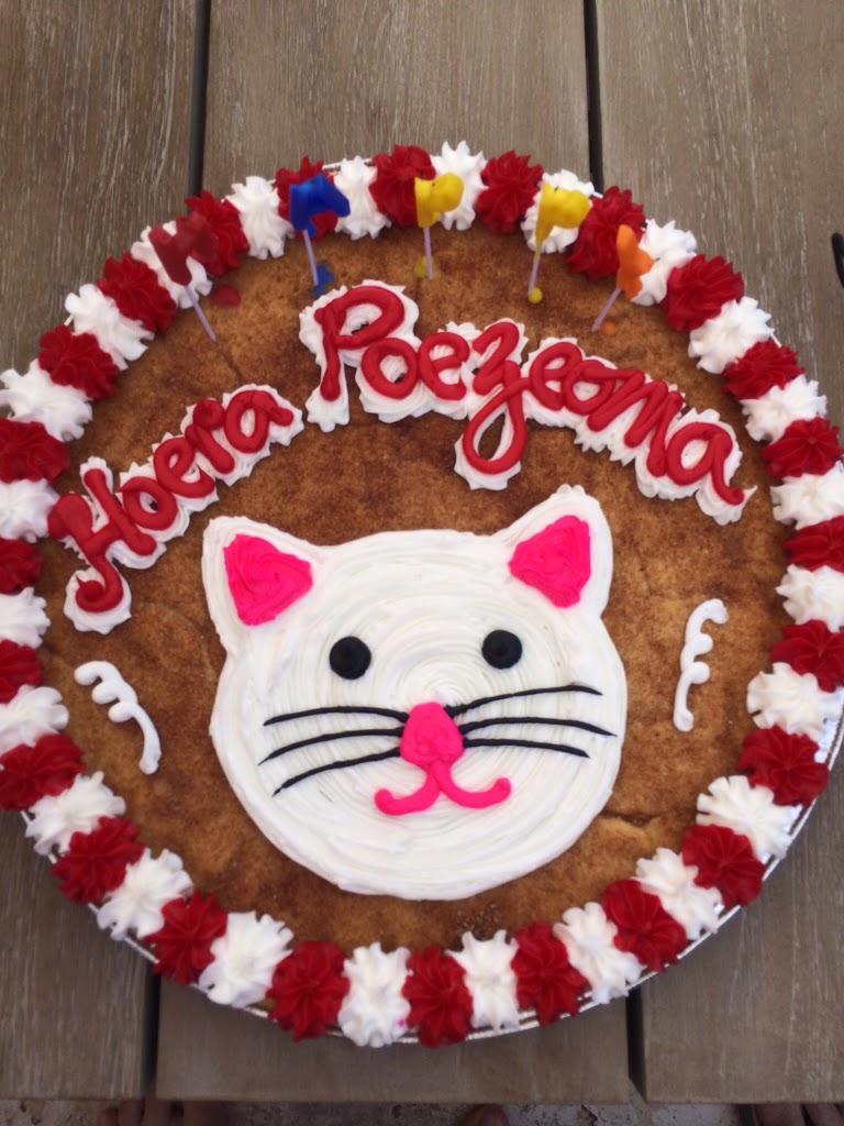 A cookie cake (requested by the girls), a relaxing afternoon by the pool and rack of lamb from the BGE ended the day on a pretty good note!l